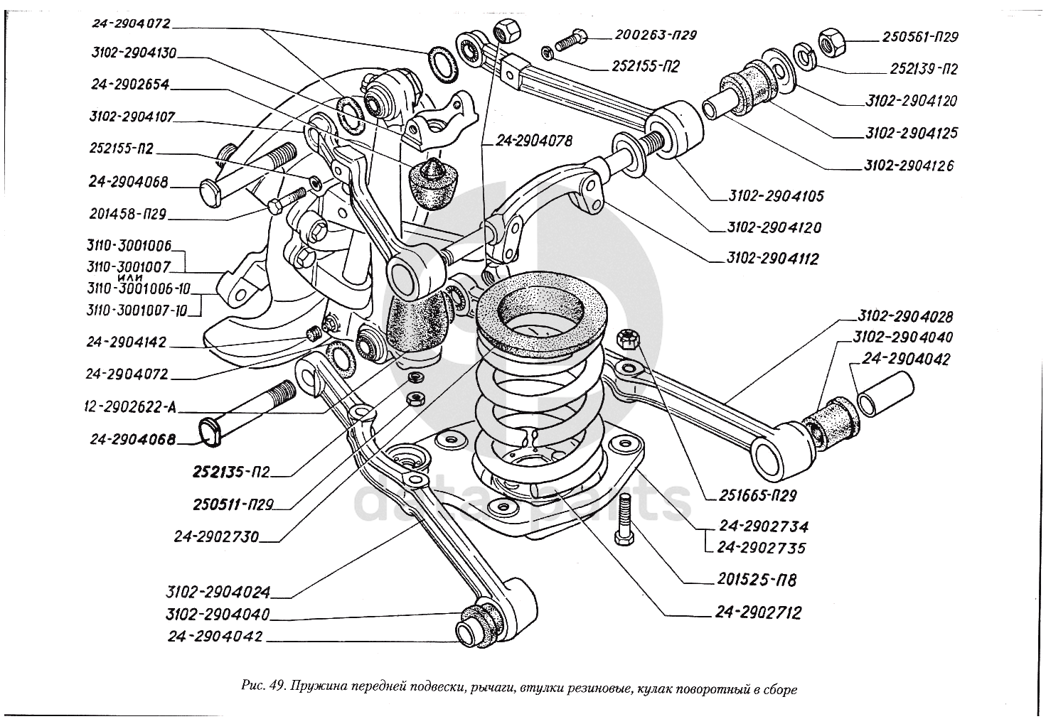 Пружина передней подвески, рычаги, втулки резиновые, кулак поворотный в сборе ГАЗ-3110
