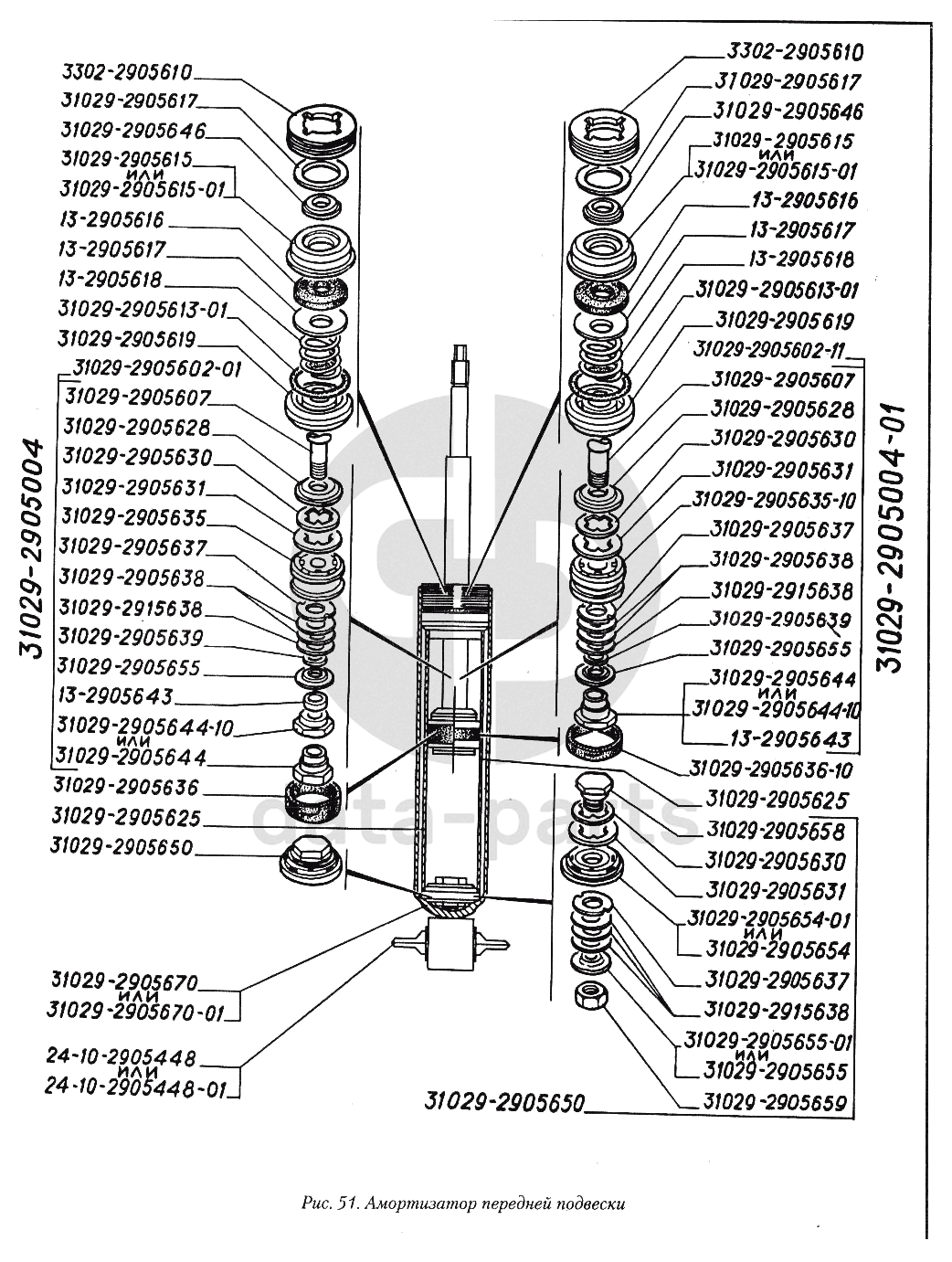 Шток переднего амортизатора с поршнем (вх. в 31029-2905004-01)