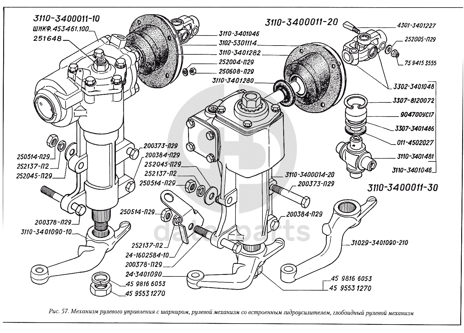 Механизм рулевого управления с шарниром рулевой механизм со встроенным гидроусилителем, глобоидный рулевой механизм ГАЗ-3110