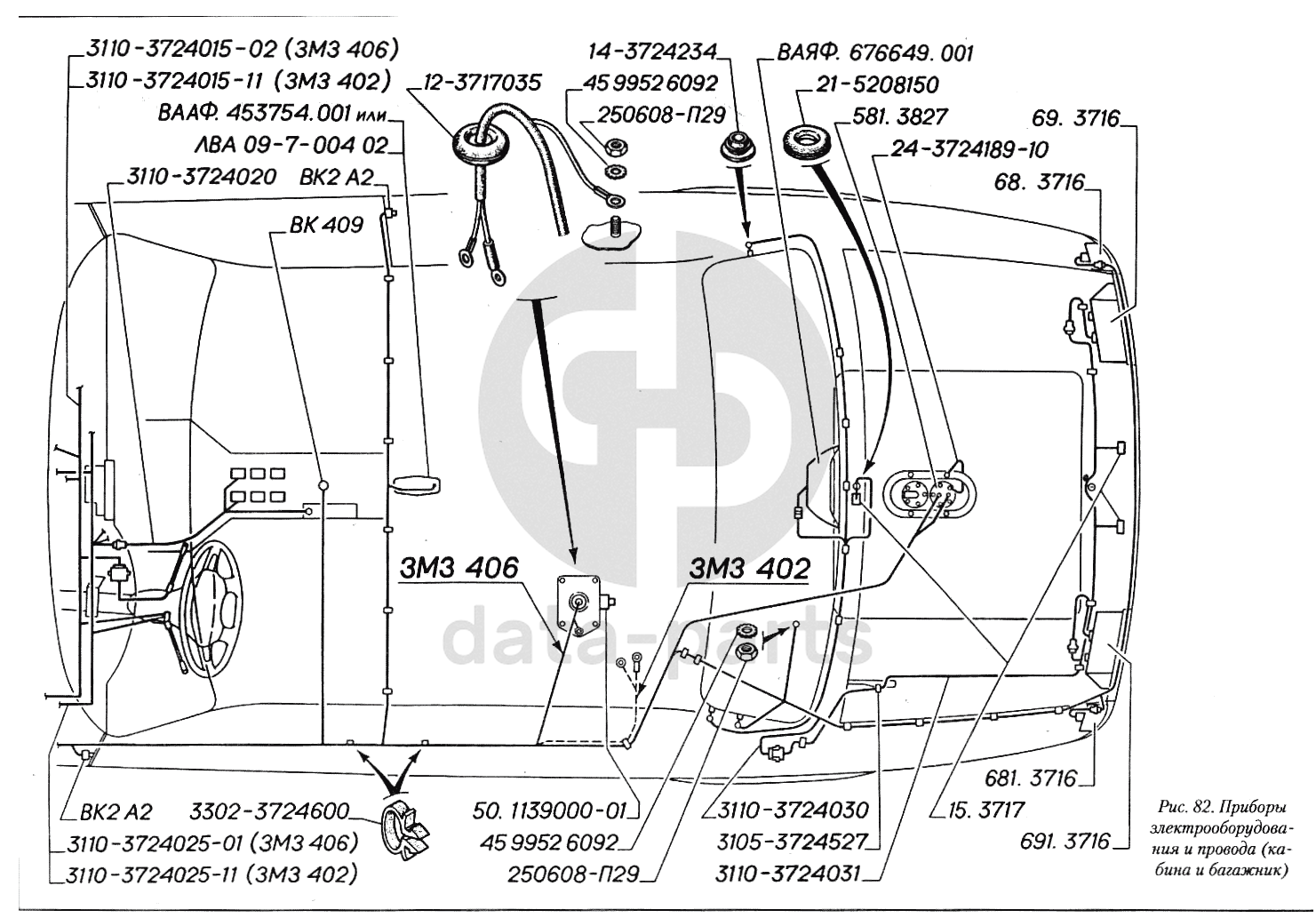 Приборы электрооборудования и провода (кабина и багажник) ГАЗ-3110