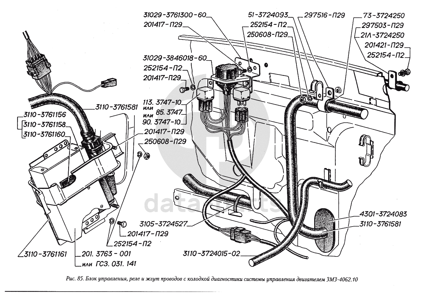 Блок управления, реле и жгут проводов с колодкой диагностики системы управления двигателем ЗМЗ-4062.10 ГАЗ-3110