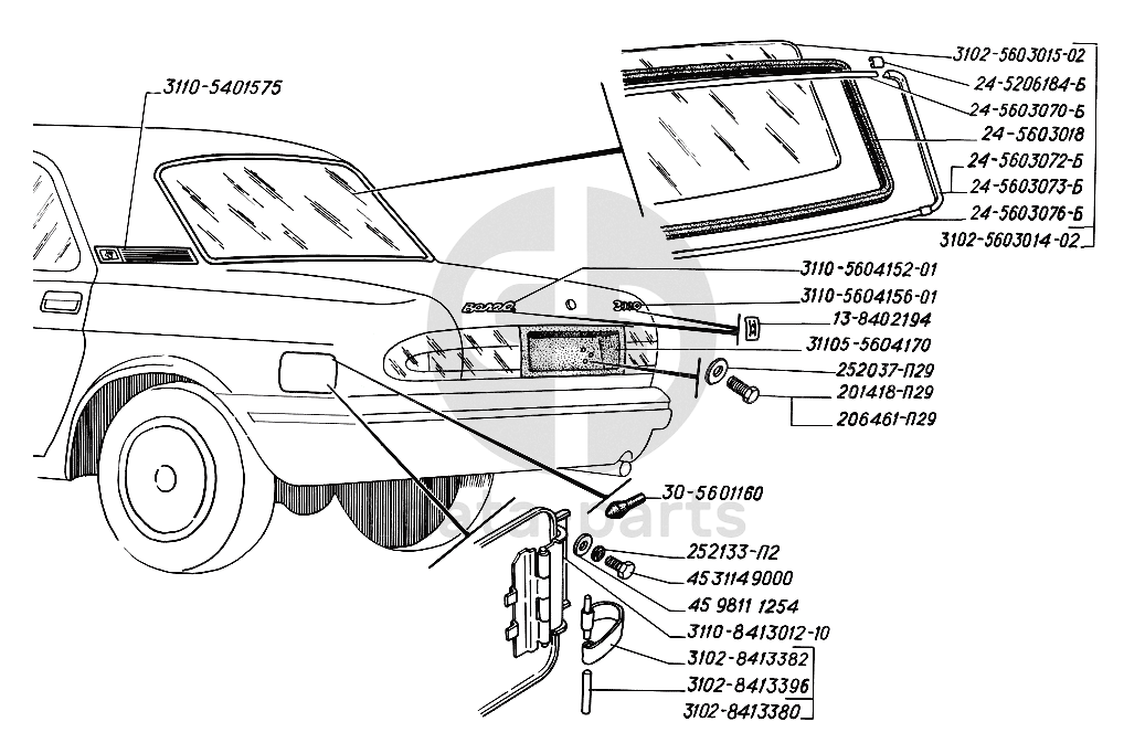 Установка деталей крышки багажника ГАЗ-31105