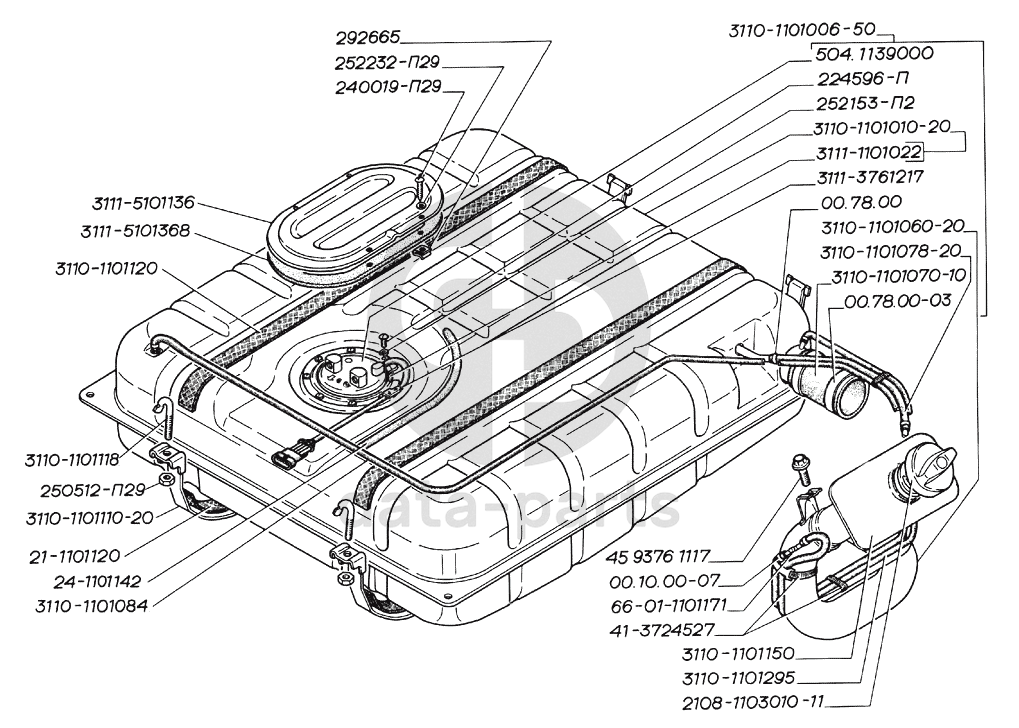 Установка топливного бака, бак топливный с погружным насосом ГАЗ-31105