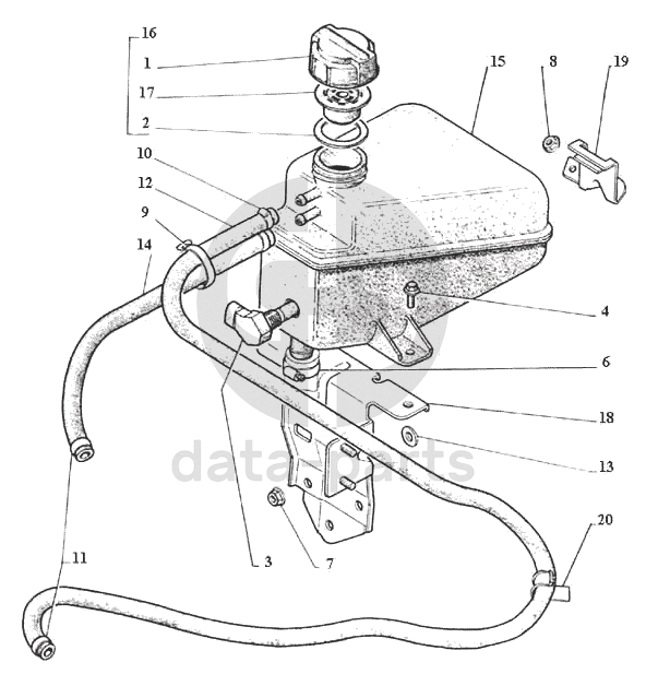 Расширительный бачок, пробка расширительного бачка, датчик БСК уровня охлаждающей жидкости (ДОХ-1) ГАЗ-3111