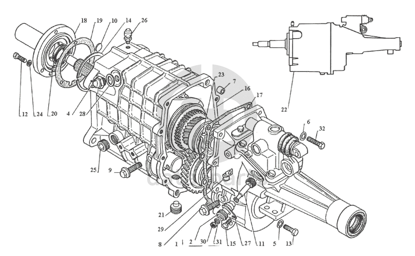 Коробка передач, картер передний, выключатель света заднего хода ГАЗ-3111