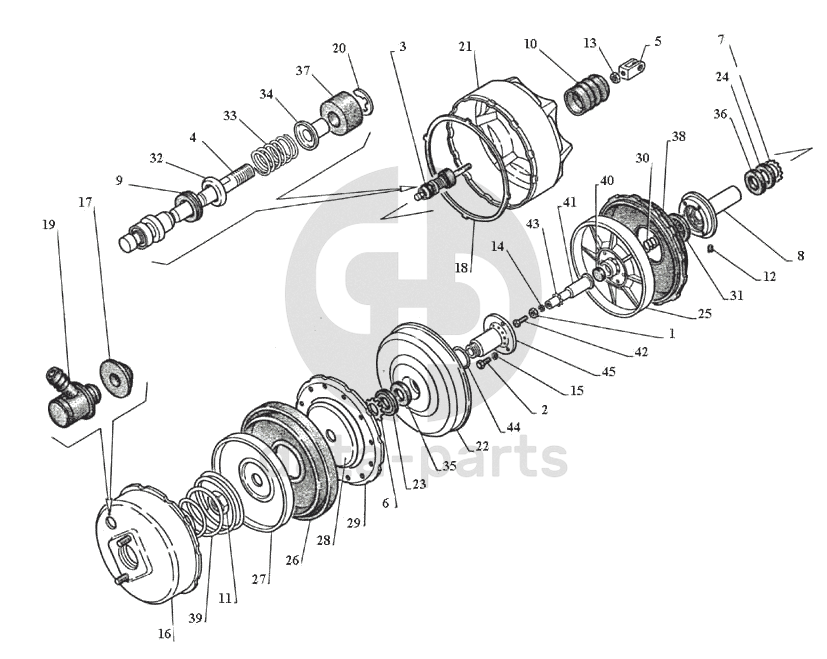 Детали вакуумного усилителя тормозов ГАЗ-3111