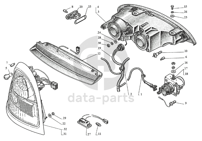 Фары, повторители указателей поворота, задние фонари ГАЗ-3111