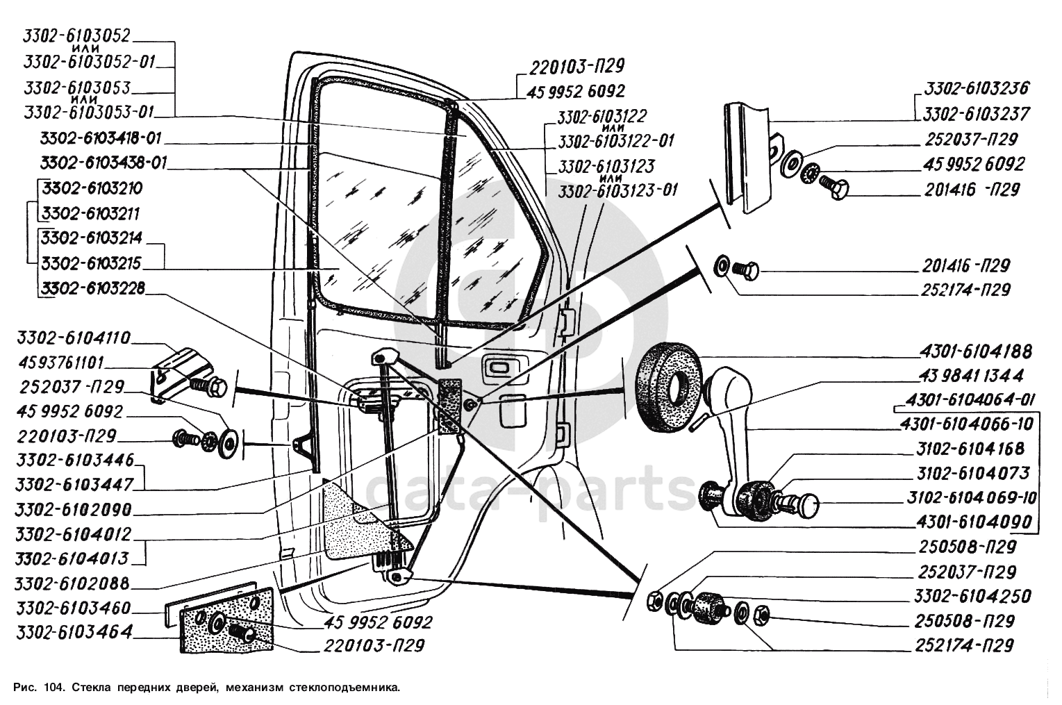 Стекла передних дверей, механизм стеклоподъемника ГАЗ-2217 (Соболь)