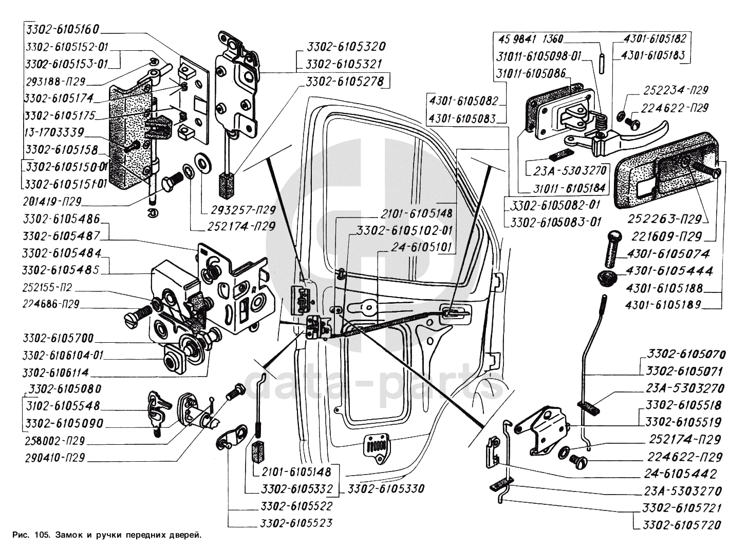 Замок и ручки передних дверей ГАЗ-2217 (Соболь)