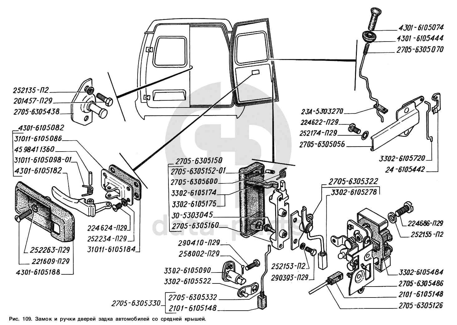 Замок и ручки дверей задка автомобилей со средней крышей ГАЗ-2217 (Соболь)