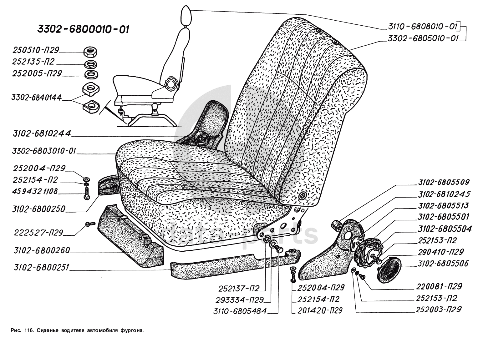Сиденье водителя автомобиля-фургона ГАЗ-2217 (Соболь)