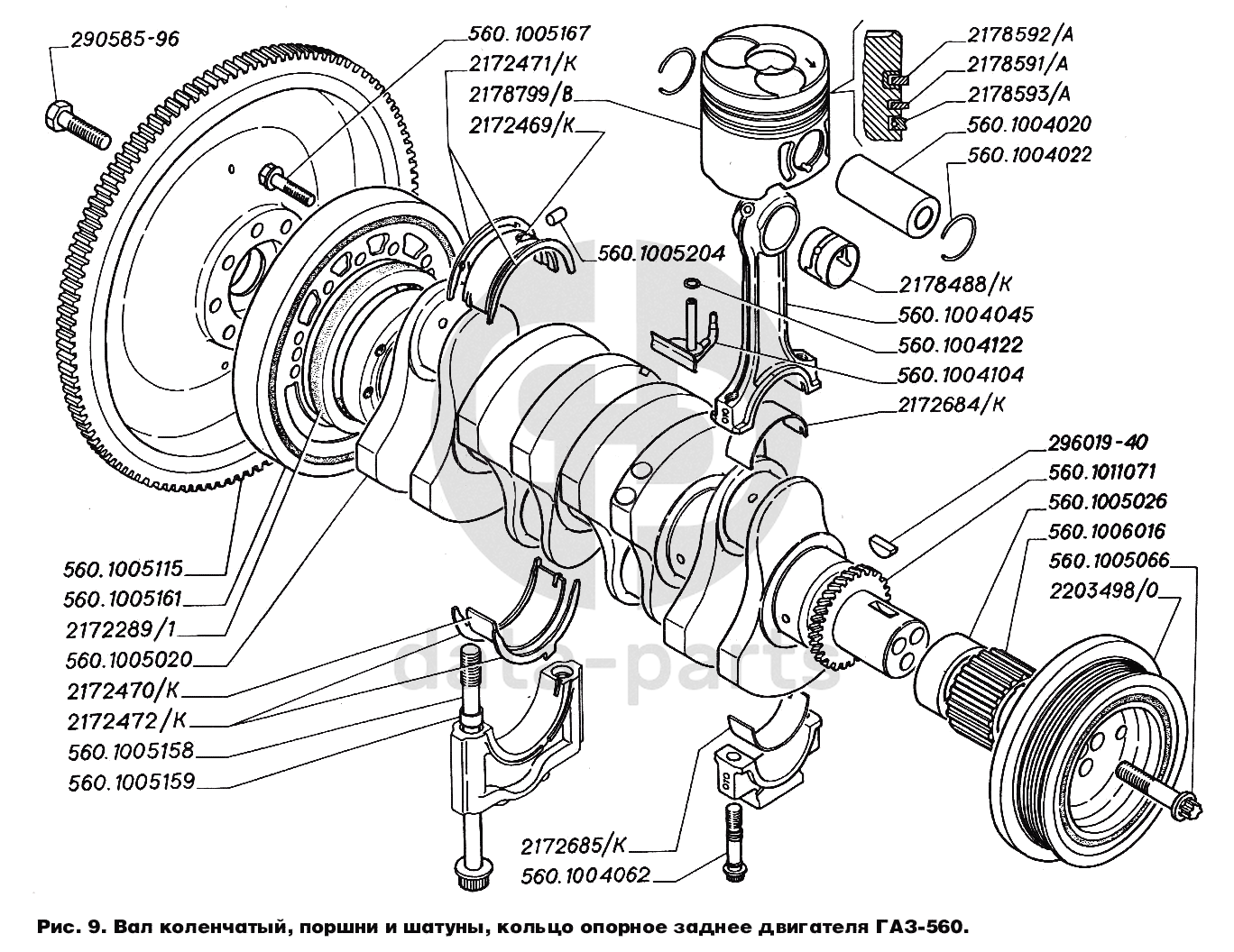 Вал коленчатый, поршни и шатуны, кольцо опорное заднее двигателя ГАЗ-560 ГАЗ-2217 (Соболь)