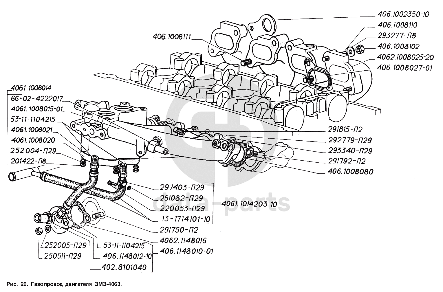 Газопровод двигателя ЗМЗ-4063 ГАЗ-2217 (Соболь)