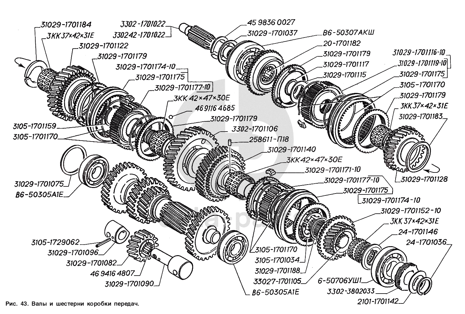 Валы и шестерни коробки передач ГАЗ-2217 (Соболь)