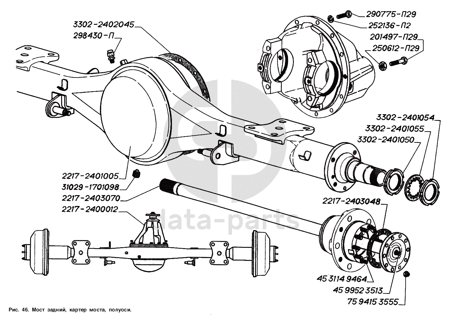 Мост задний, картер моста, полуоси ГАЗ-2217 (Соболь)