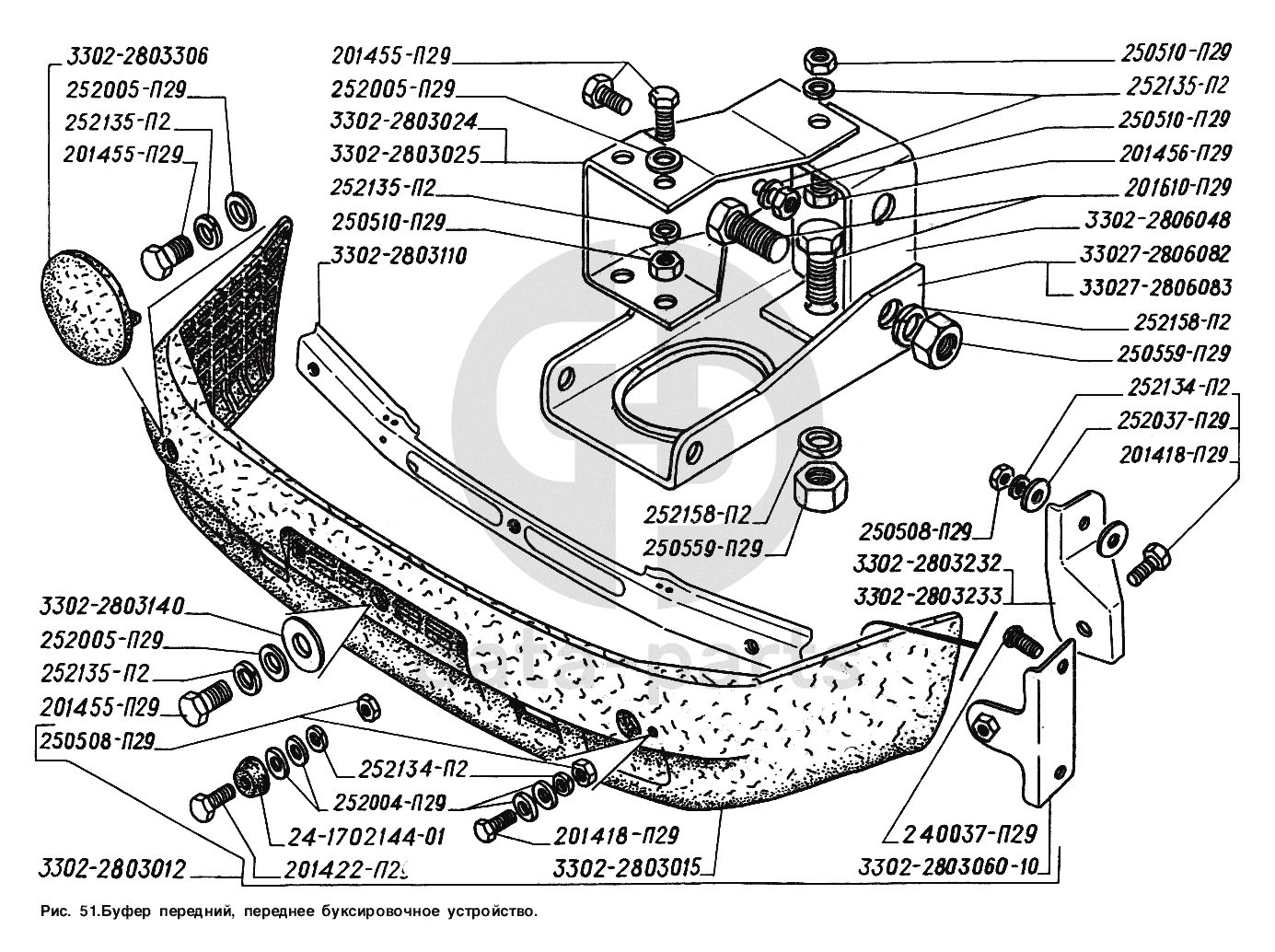 Буфер передний, переднее буксирное устройство ГАЗ-2217 (Соболь)
