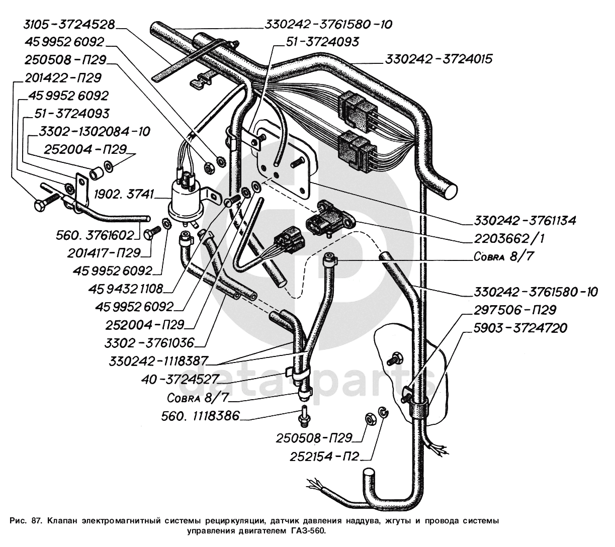 Клапан электромагнитный системы рециркуляции, датчик давления наддува, жгуты и провода системы управления двигателем ГАЗ-560 ГАЗ-2217 (Соболь)