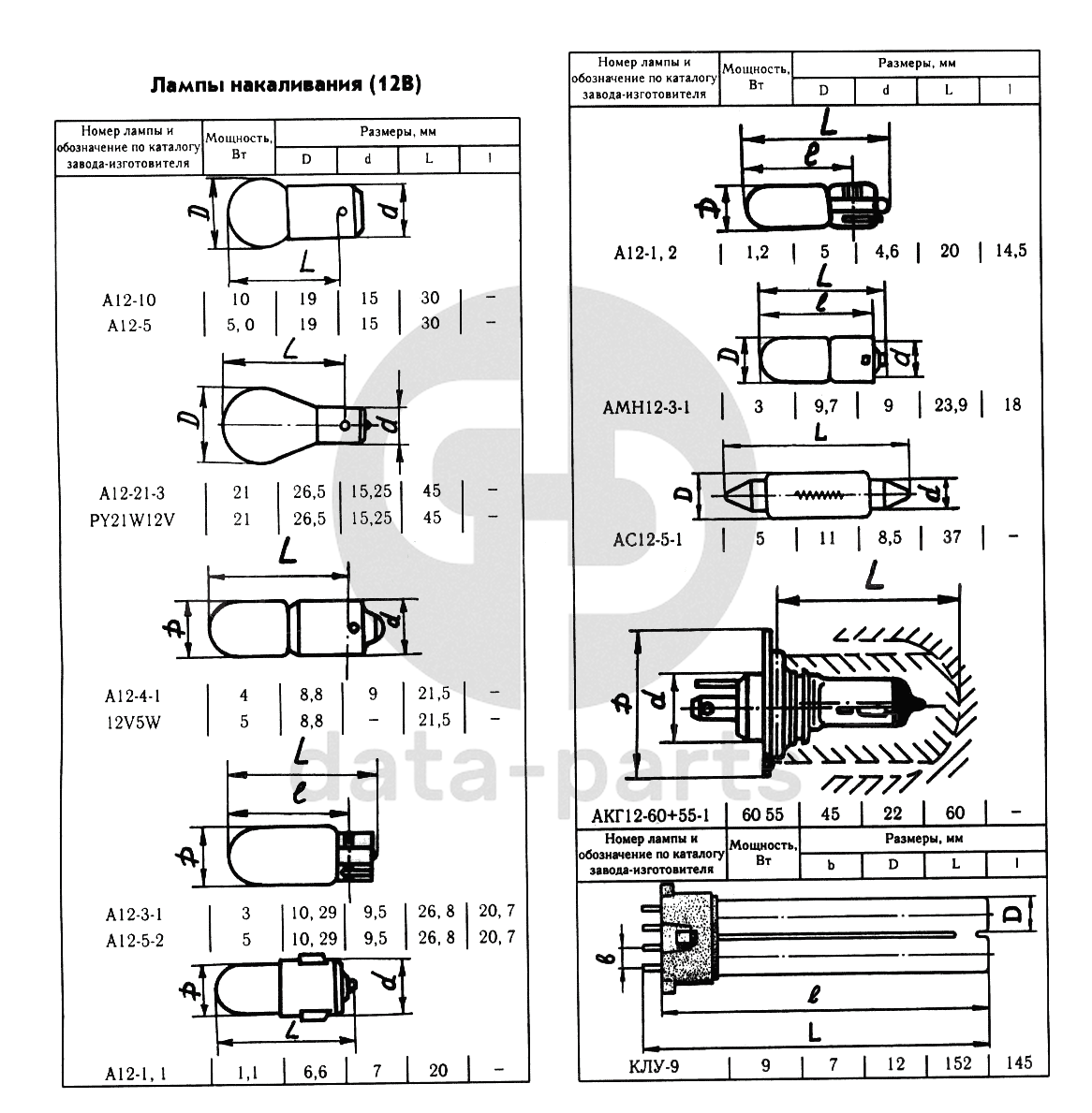 Лампы накаливания (12В) ГАЗ-2217 (Соболь)