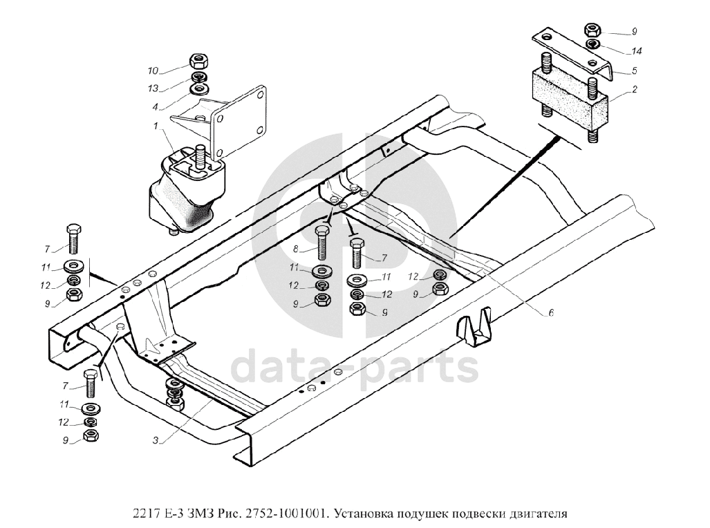 2752-1001001. Установка подушек подвески двигателя ГАЗ-2217 (доп. с дв. ЗМЗ Е 3)