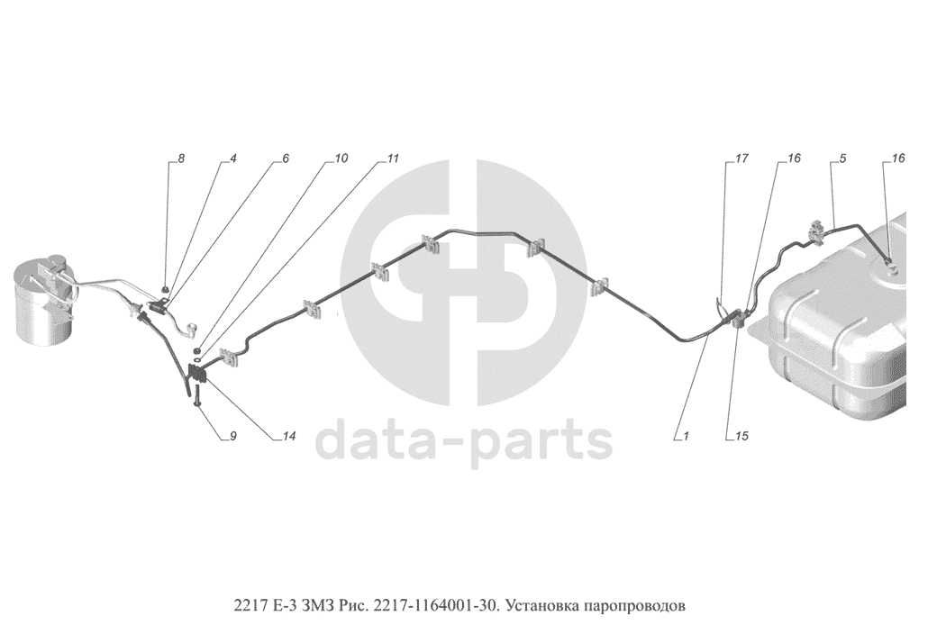 2217-1164001-30. Установка паропроводов ГАЗ-2217 (доп. с дв. ЗМЗ Е 3)