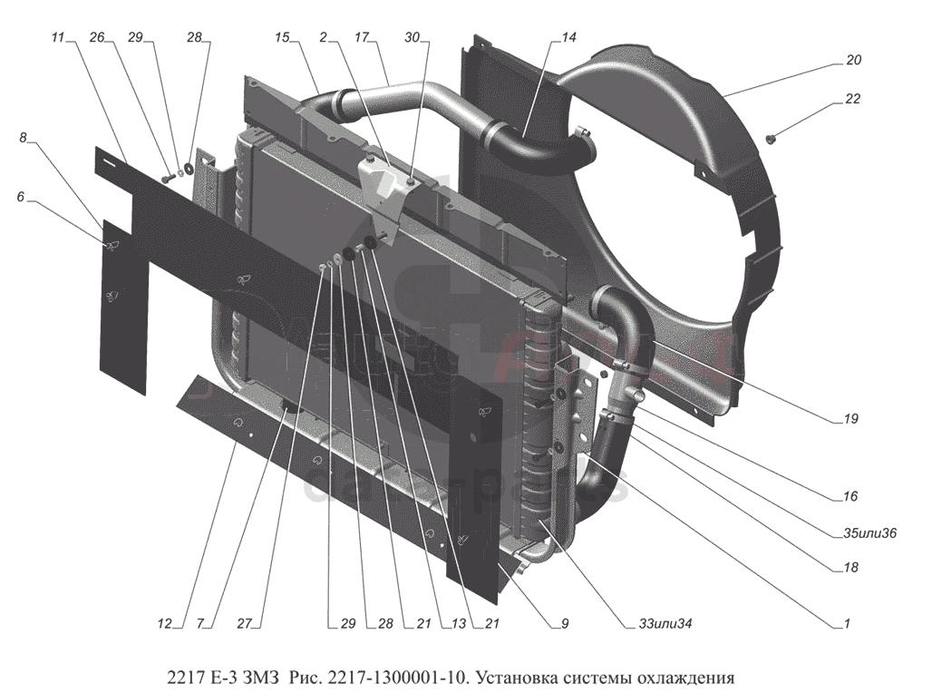 2217-1300001-10. Установка системы охлаждения ГАЗ-2217 (доп. с дв. ЗМЗ Е 3)