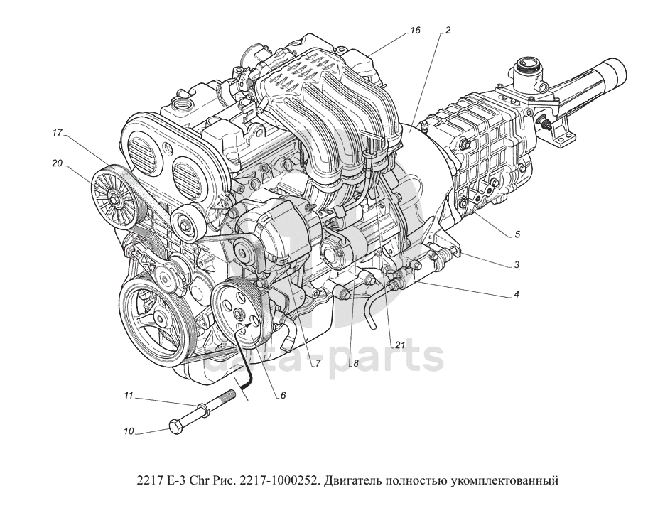 2217-1000252. Двигатель полностью укомплектованный ГАЗ-2217 (доп. с дв. Chr Е 3)