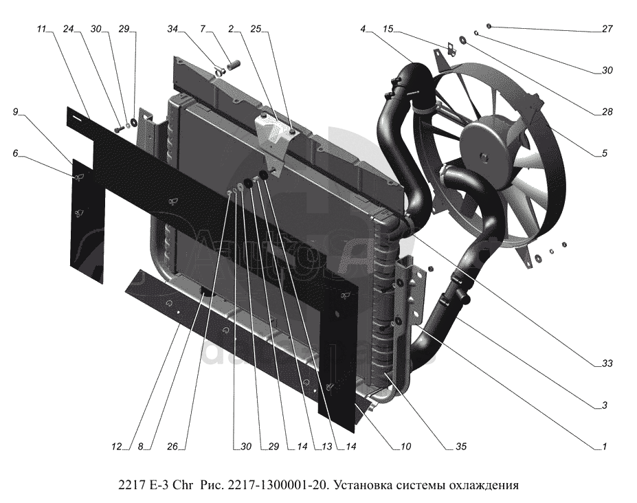 2217-1300001-20. Установка системы охлаждения ГАЗ-2217 (доп. с дв. Chr Е 3)