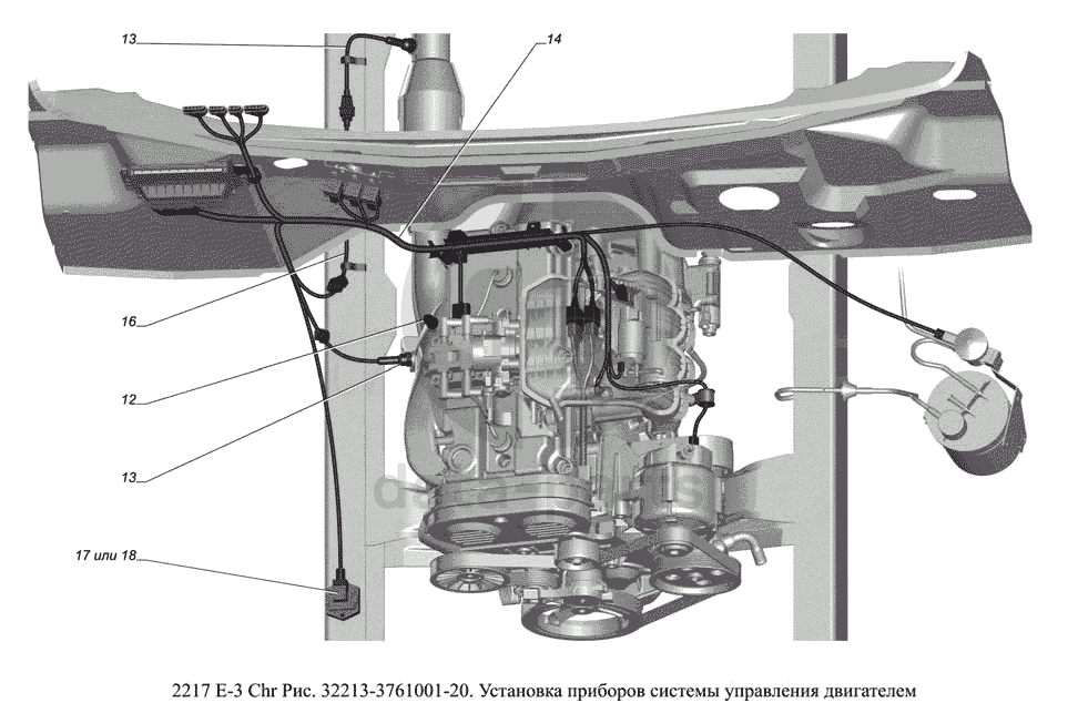 32213-3761001-20.Установка приборов системы управления двигателем ГАЗ-2217 (доп. с дв. Chr Е 3)