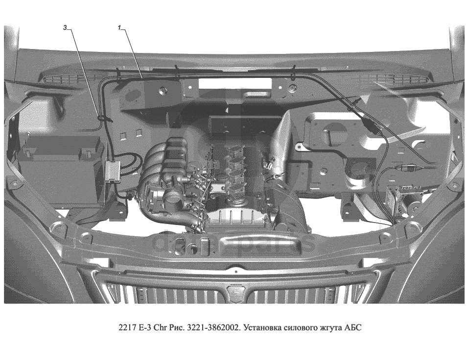 3221-3862002. Установка силового жгута АБС ГАЗ-2217 (доп. с дв. Chr Е 3)