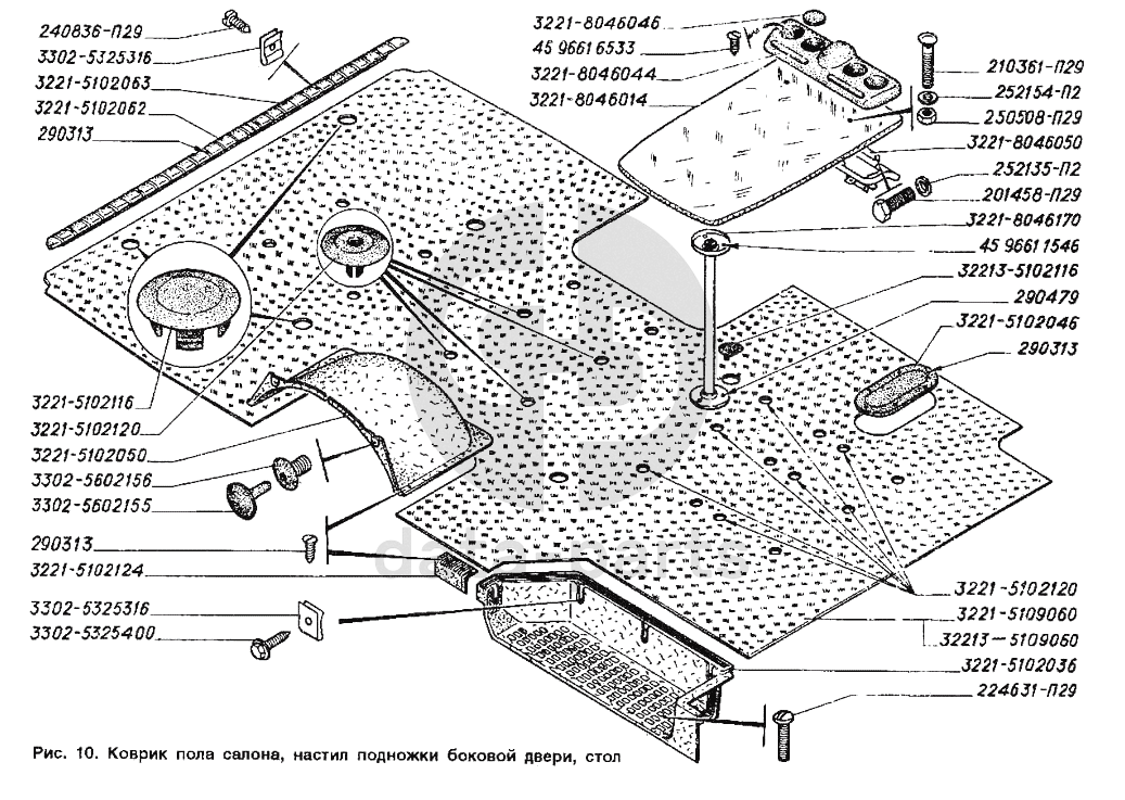 Коврик пола салона, настил подножки боковой двери, стол ГАЗ-2705 (ГАЗель)