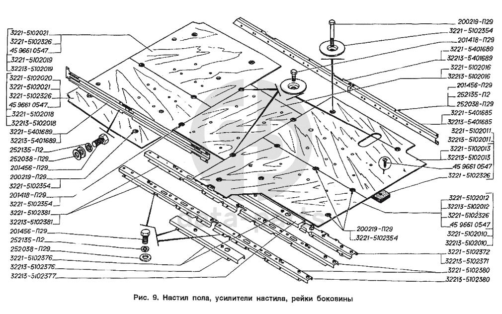 Настил пола, усилители настила, рейки боковины ГАЗ-2705 (ГАЗель)