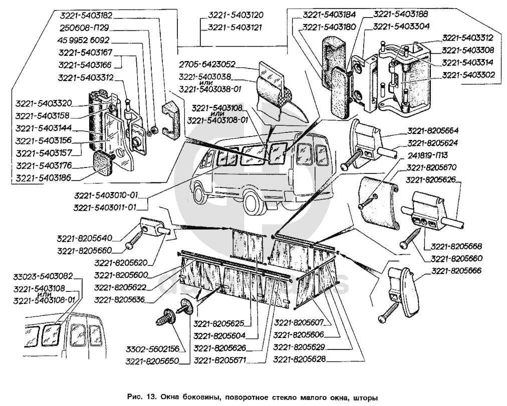 Окна боковины, поворотное стекло малого окна, шторы ГАЗ-2705 (ГАЗель)