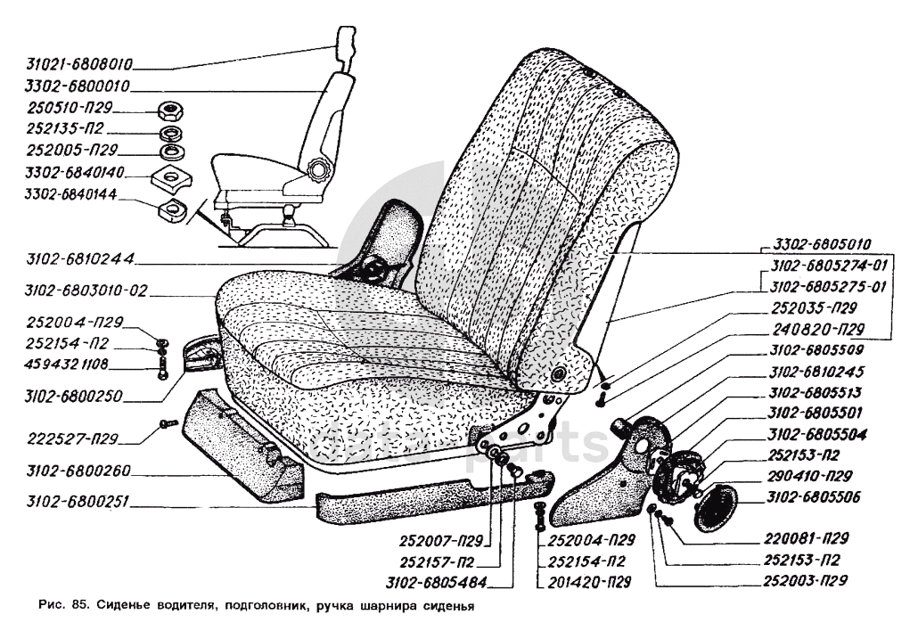 Сиденье водителя, подголовник, ручка шарнира сиденья ГАЗ-2705 (ГАЗель)