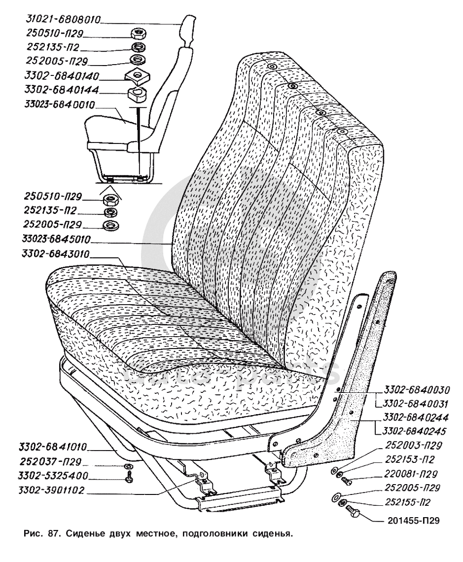 Сиденье двухместное, подголовники сидений ГАЗ-2705 (ГАЗель)