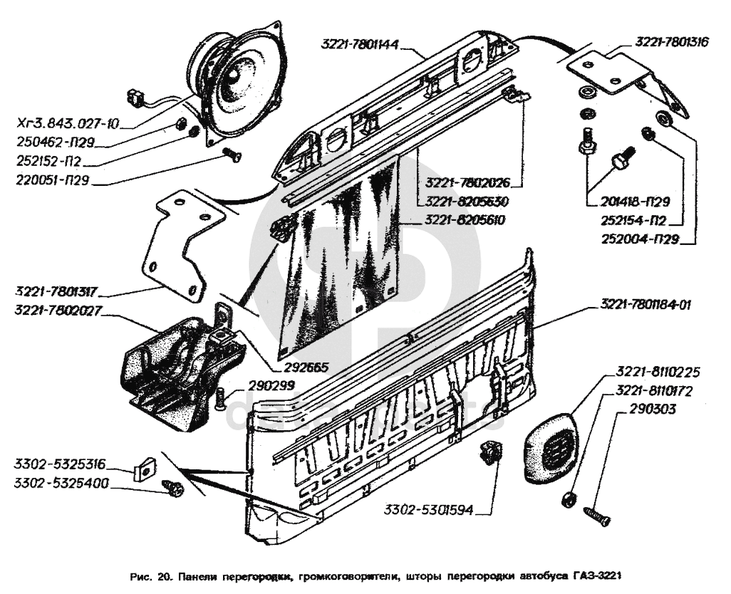 Панели перегородки, громкоговорители, шторы перегородки автобуса ГАЗ-3221 ГАЗ-2705 (ГАЗель)