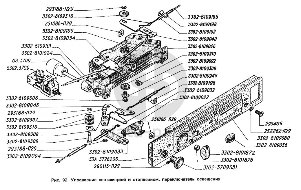 Управление вентиляцией и отоплением, переключатель освещения ГАЗ-2705 (ГАЗель)