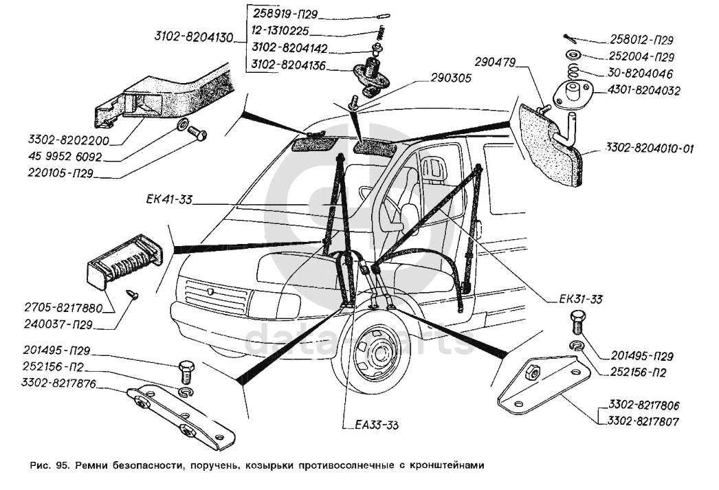Ремни безопасности, поручень, козырьки противосолнечные с кронштейнами ГАЗ-2705 (ГАЗель)