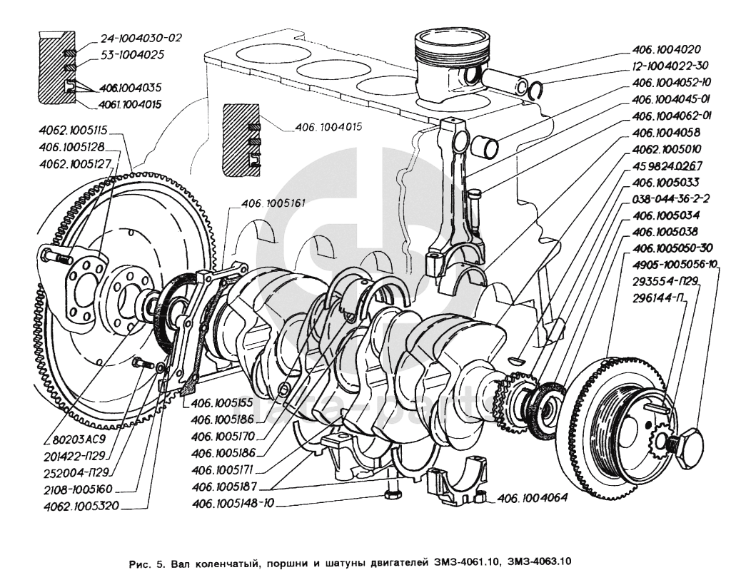 Вал коленчатый, поршни и шатуны двигателей ЗМЗ-4061.10, ЗМЗ-4063.10 ГАЗ-2705 (ГАЗель)