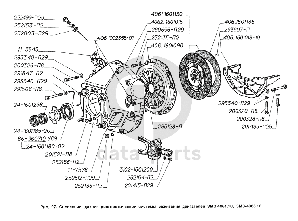 Сцепление, датчик диагностический системы зажигания двигателей ЗМЗ-4061.10, ЗМЗ-4063.10 ГАЗ-2705 (ГАЗель)