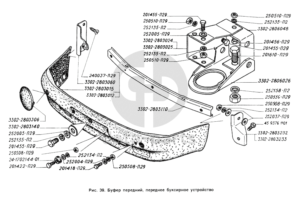 Буфер передний, переднее буксирное устройство ГАЗ-2705 (ГАЗель)