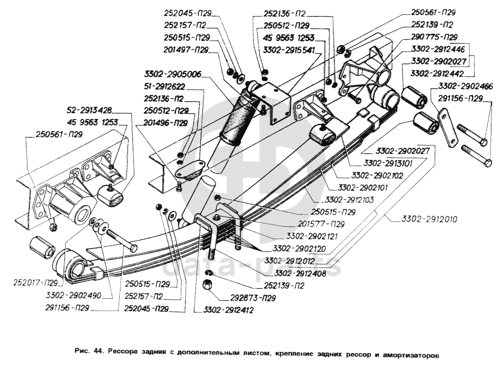 Рессора задняя с дополнительным листом, крепление задних рессор и амортизаторов ГАЗ-2705 (ГАЗель)
