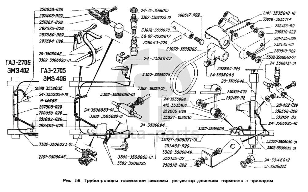 Трубопроводы тормозной системы, регулятор давления тормозов с приводом ГАЗ-2705 (ГАЗель)