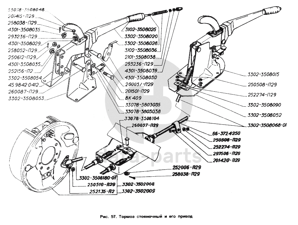 Тормоз стояночный и его привод ГАЗ-2705 (ГАЗель)