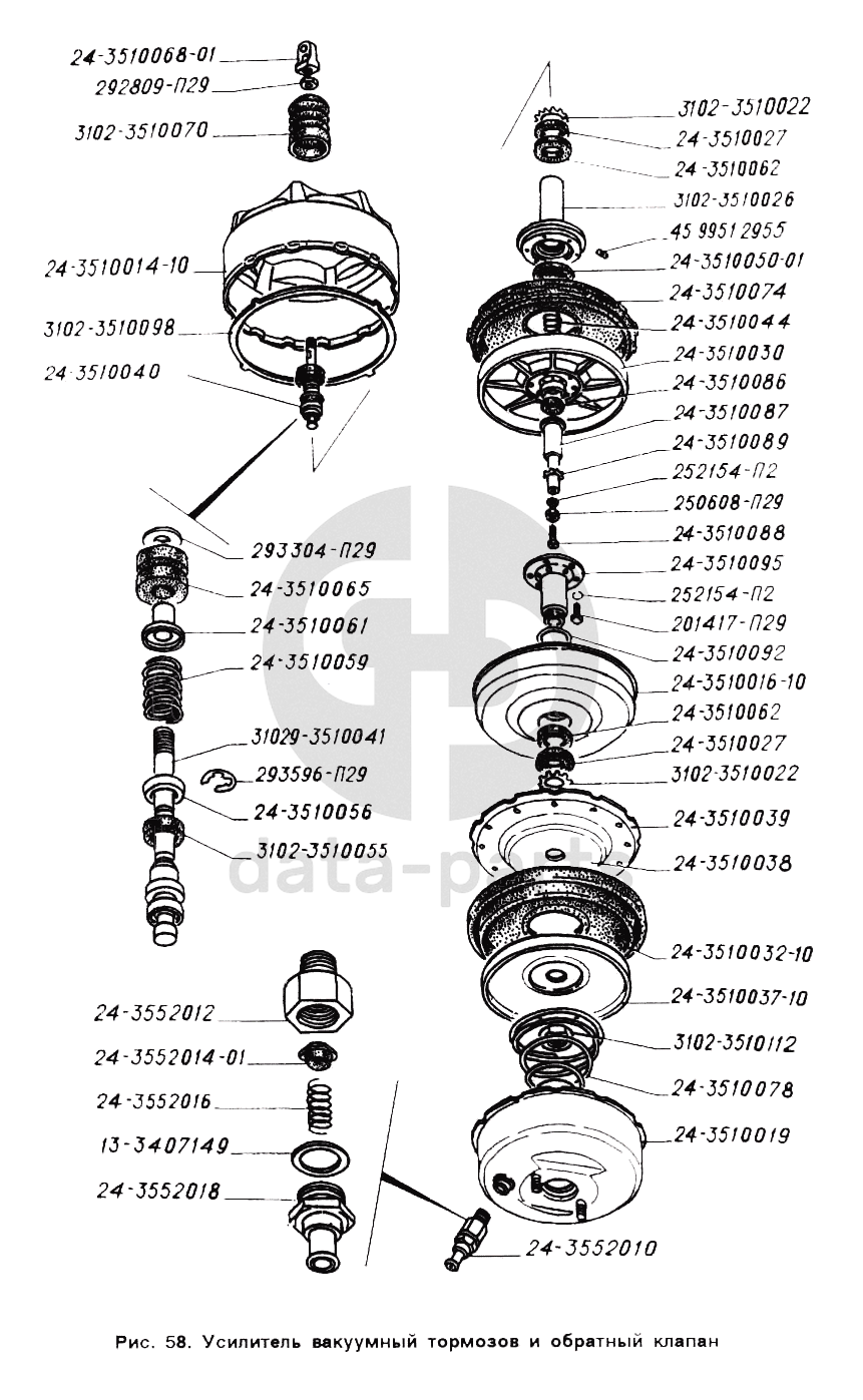 Усилитель вакуумный тормозов и обратный клапан ГАЗ-2705 (ГАЗель)