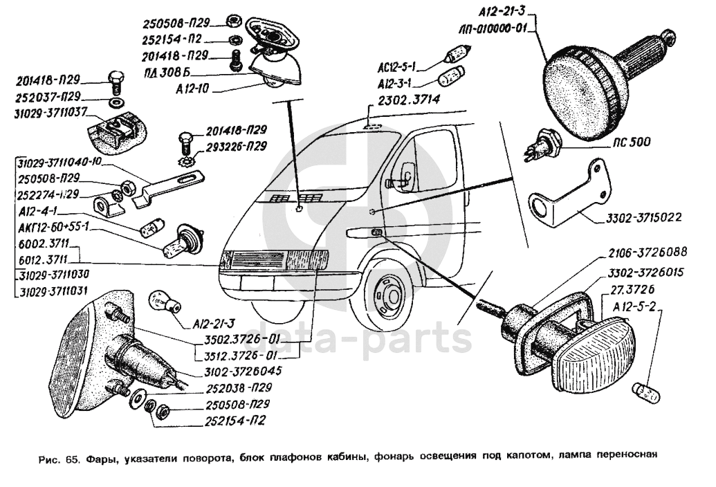 Фары, указатели поворота, блок плафонов кабины, фонарь освещения под капотом, лампа переносная ГАЗ-2705 (ГАЗель)