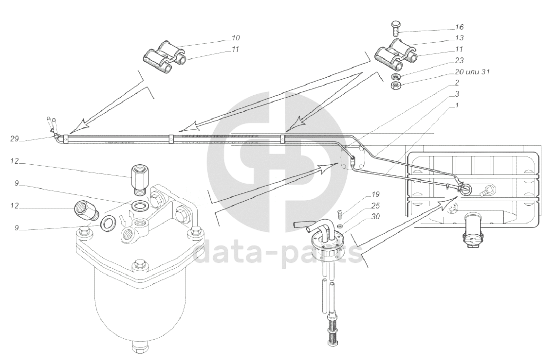 33081-1104001. Установка топливопроводов ГАЗ-33081