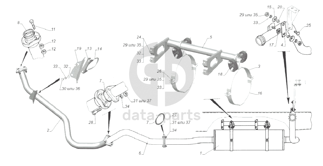 33081-1200001-70. Установка системы выпуска газов ГАЗ-33081