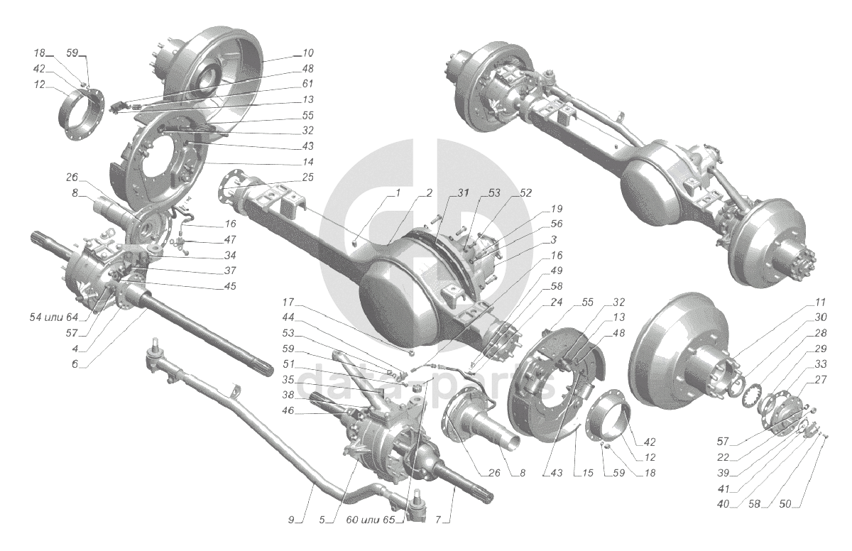 33081-2300012-20. Мост передний ведущий с тормозами и ступицами ГАЗ-33081