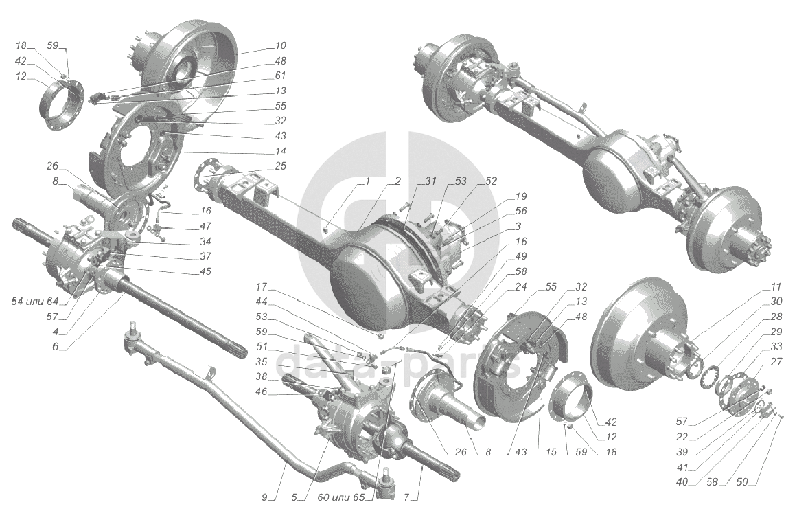 33081-2300012-50. Мост передний ведущий с тормозами и ступицами ГАЗ-33081