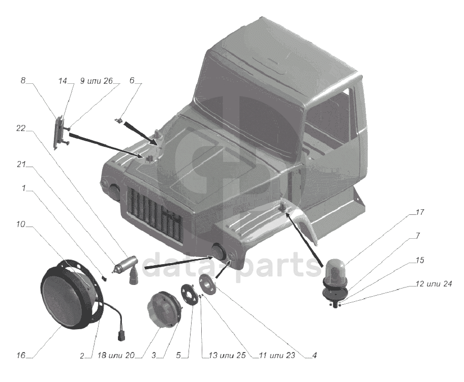 33097-3711003. Установка осветительной и светосигнальной аппаратуры ГАЗ-33081